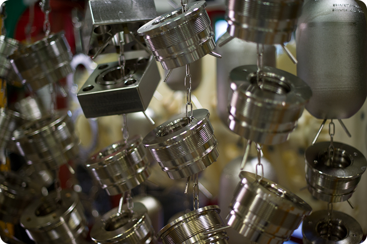 Contrairement à la galvanoplastie (dépôt électrolytique), le nickel chimique n’utilise pas de courant électrique. La réaction est uniforme sur toute la surface immergée, quelle que soit la géométrie.