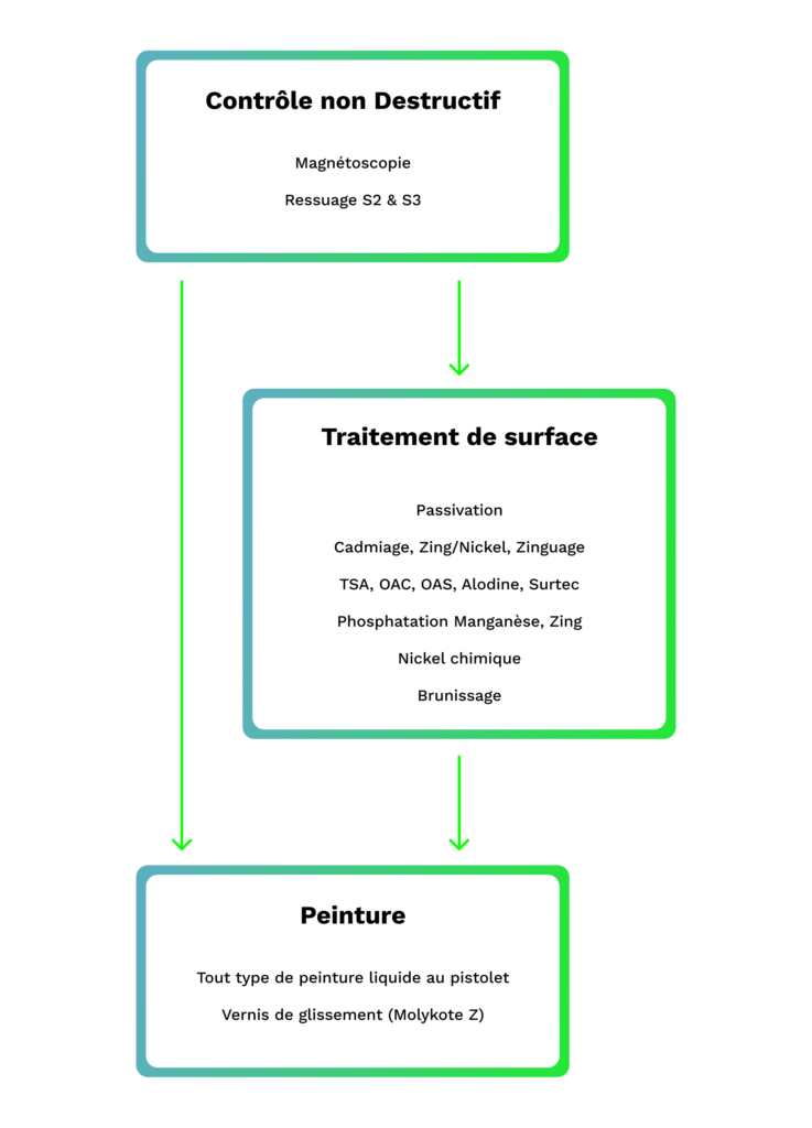 Nos 2 ateliers proposent de larges possibilités de traitement du Contrôle non destructif en passant par un bon nombre de traitements pour finir sur des opérations de peinture.